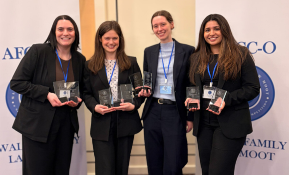 Every year, our students have an opportunity to practice their skills at competitive moots across Canada and internationally. Each team puts months of dedication and hard work into preparing for competition. No matter the results, we are proud to have them represent Schulich Law.